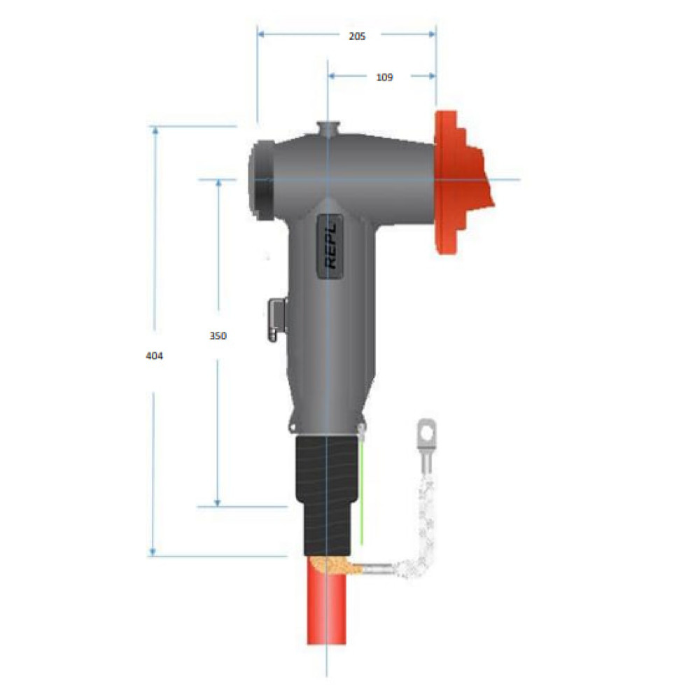 Екранований кабельний адаптер для бушинга C2 (1250А). Т-подібна асиметрична компактна модель. Є повністю готовою до підключення системою. Зовнішній корпус однаковий для всіх типів кабелів. Завдяки внутрішнім адаптерам конструкція підходить для кабелів різних розмірів. З’єднання кабелю та бушинга здійснюється за допомогою гвинта. Зовнішній край адаптера закривається гумовою заглушкою. Екранований кабельний адаптер застосовується при максимальній напрузі до 42 кВ. Максимально допустимий переріз кабелю — 800 мм².