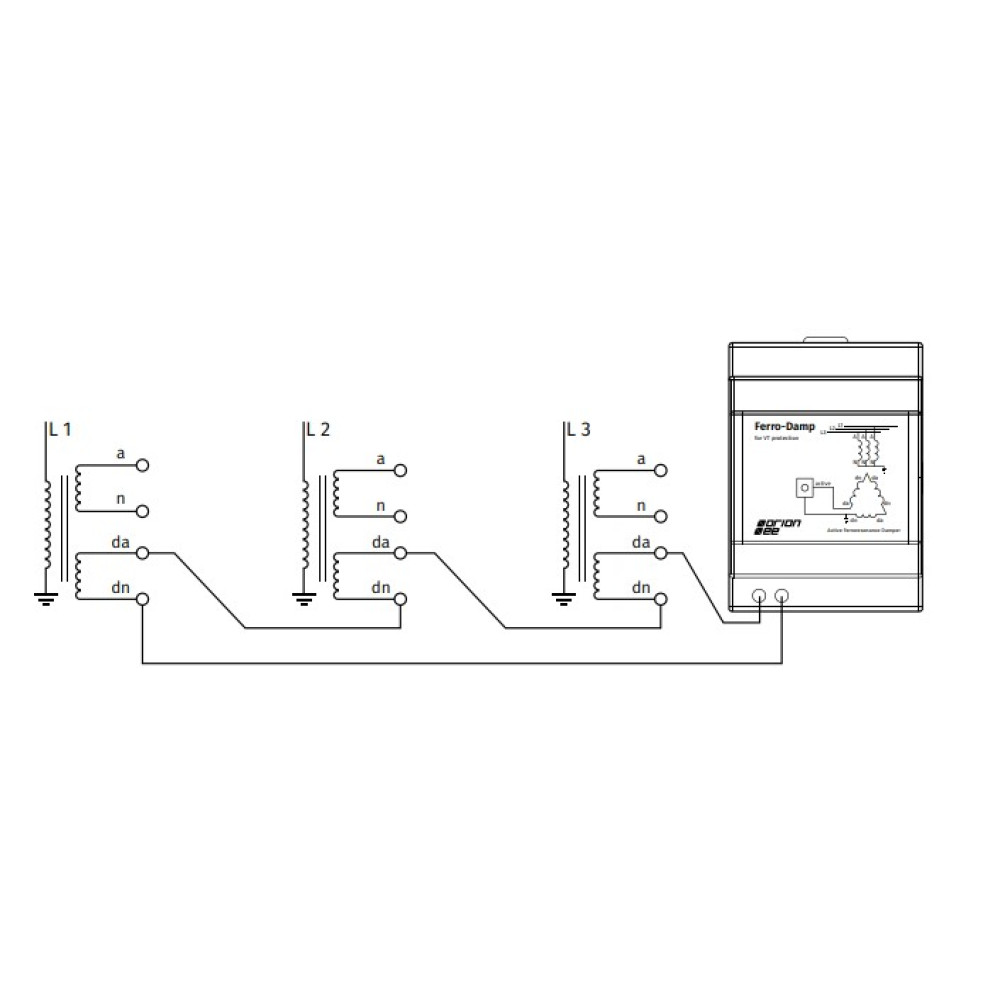 - One Ferro-Damp for the protection of 3 voltage transformers with open-delta connection.